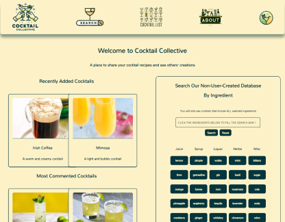 Cocktail Collective is a dynamic and interactive website designed for cocktail enthusiasts. Built using Flask and Python for the backend, and React Redux for the frontend, this platform allows users to explore and share cocktail recipes.